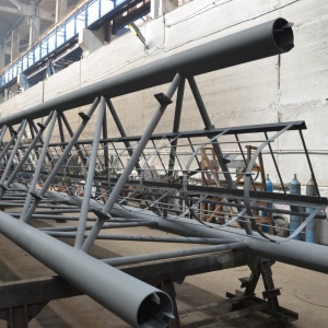 Конструкция, в которой один или несколько газоотводящих стволов закреплены внутри несущей металлической фермы. Ферменные трубы оптимальны для больших высот — 30 метров и выше — а также в случаях, когда требуется разместить в одной башне несколько дымоходов от разных котлов. Ферма обеспечивает жёсткость и устойчивость конструкции при значительной высоте, а стволы можно обслуживать и менять по отдельности, не демонтируя всю трубу.